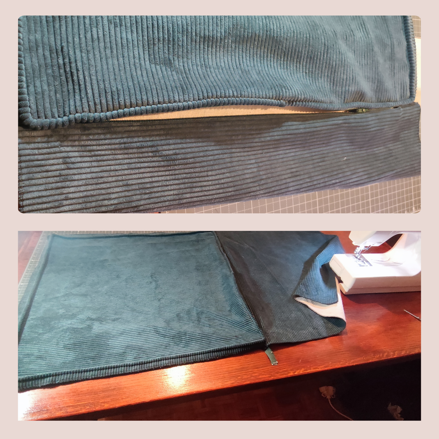 • Coudre tout le tour en suivant la couture du passepoil, en laissant une ouverture pour la fermeture éclair.