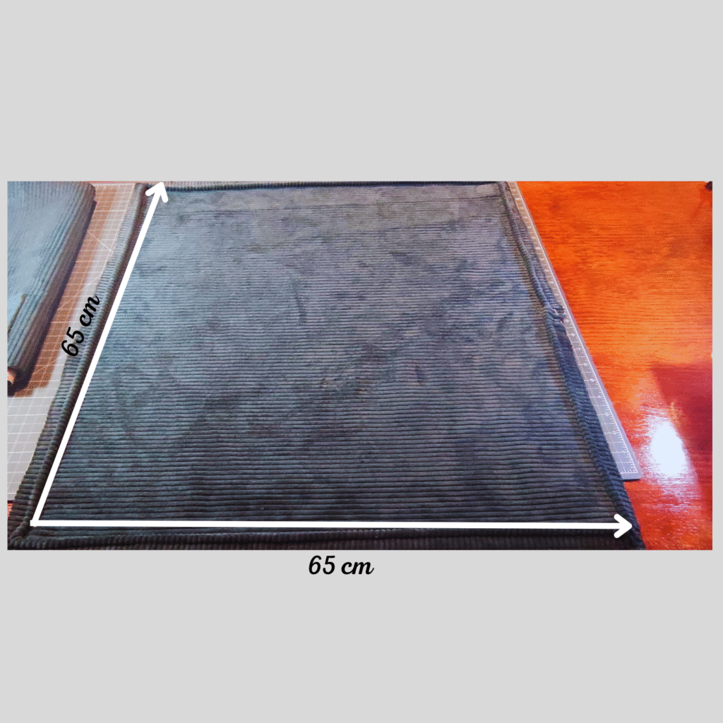 • Couper deux carrés de tissu à cette dimension + 1 cm de marge de couture de chaque côté