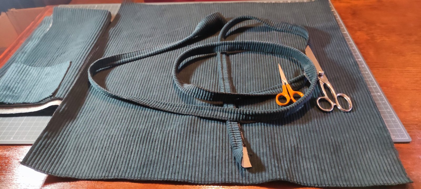 • Coudre le passepoil tout autour avec un pied à fermeture ou un pied spécial passepoil, en suivant bien le cordon.